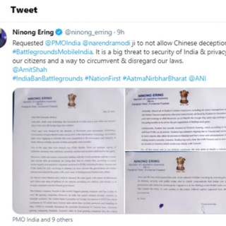 Arunachal Pradesh mlm ninong erreng saying BATTLEGROUND mobile india is Chinese game to ban the game